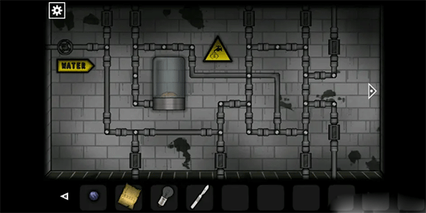 离开房间后前往工具房门口,根据此前在卫生间获得的提示解锁铁门。进入后连接散落的水管部件,并转动左上角的阀门以恢复供水。