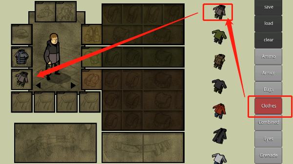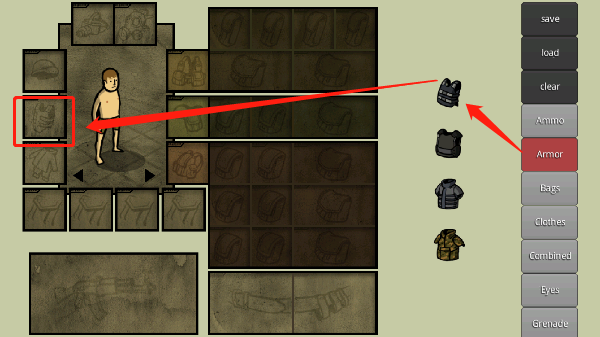 例如,“bag”代表背包类装备,“eye”包含夜视仪与战术护目镜等。将所需物品拖至人物周围对应方框内即可装备,若位置不匹配则无法生效。注意:暗色区域需先装备背包类物品才能解锁存储空间。