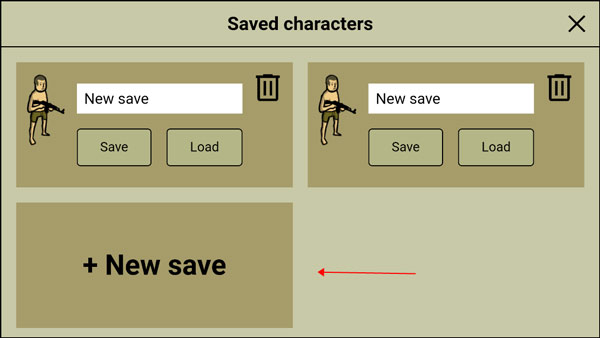 完成换装后务必点击“save”,再选择底部“create new”进行保存,以便继续编辑新角色。如需删除某份存档,点击其右侧的垃圾桶图标即可。