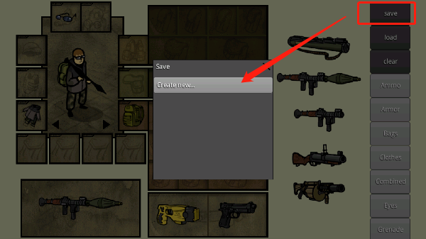 角色搭配完成后,滑动至顶部点击“save”,再选择“create new”即可保存当前配置。