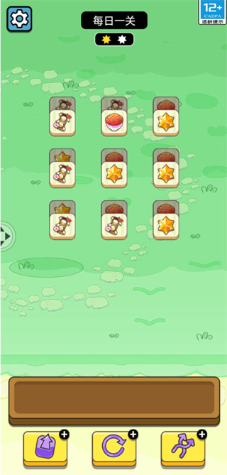 牛了个牛是一款三消类小游戏,在保留核心玩法的基础上进行了趣味改编,将主题从羊换成了牛。界面下方设有7个卡槽,玩家需不断点击上方堆叠的卡牌,将相同图案的卡片配对消除。