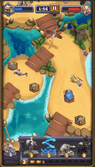 通过拖拽方式在战场上部署英雄,构建防线应对不断涌来的敌人。