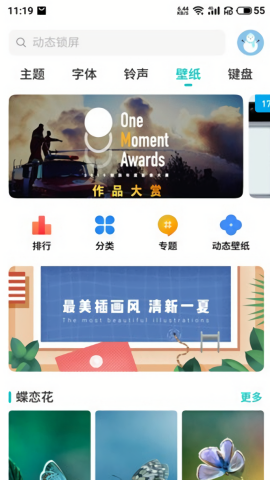 内置多款高清动态与静态壁纸,适配不同屏幕比例,视觉效果出众。