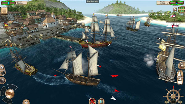 除海盗与走私者外,其他类型船只均可俘获。未点技能时船队上限为两艘,近战击败的敌船通常留有少量船员,可转移至己方使用;若无船员则无法操控,可拖至港口出售换取少量金币。菜单栏“重置”功能仅在海上生效,港口内无效。
