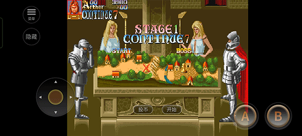 进入关卡后,左侧控制角色移动,右侧A键用于攻击,B键负责跳跃。