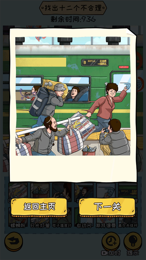 核心玩法围绕“找出不合理物品”展开,你需要从画面中识别出不符合逻辑或情境的元素。