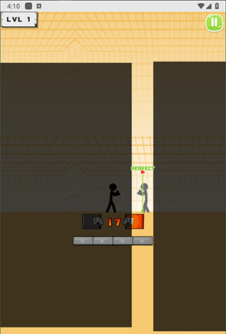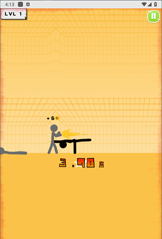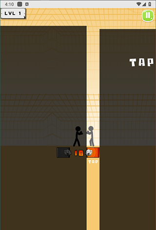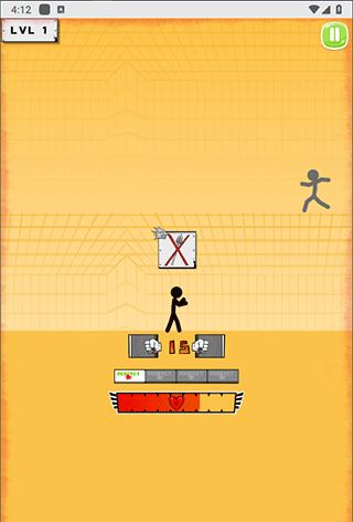 每个关卡中操控黑色火柴人对抗敌方单位,当敌人进入攻击范围时,点击拳头图标即可发动攻击。