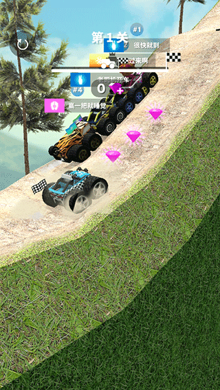 随着进度推进,第四关后将解锁车库系统,此时可使用累积的钻石对车辆进行全方位改造,包括车身涂装、轮胎类型乃至旗帜装饰。