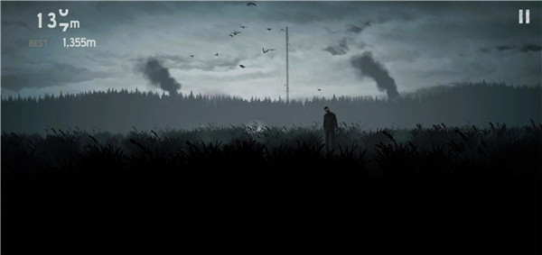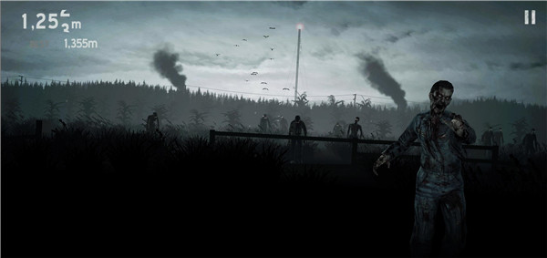 奔跑途中,薄雾中逐渐显现出破败的栅栏、荒废的田地与孤立木桩,而更令人警惕的是那些缓缓逼近的僵尸。它们如黑夜般围拢而来,压迫感十足。此时唯一的选择便是不断向前,依靠本能与技巧在灰暗世界中求生。
