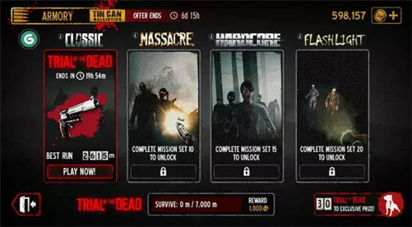 游戏包含多种模式,如传统模式、大屠杀模式、极端模式和闪光灯模式。除传统模式外,其余均需通过完成特定任务逐步解锁,增加玩法多样性与挑战深度。