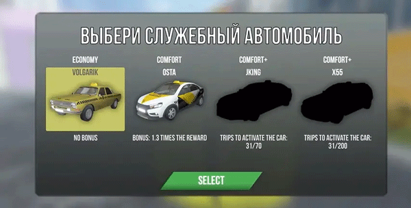 随后从可用列表中挑选一辆出租车作为工作载具。