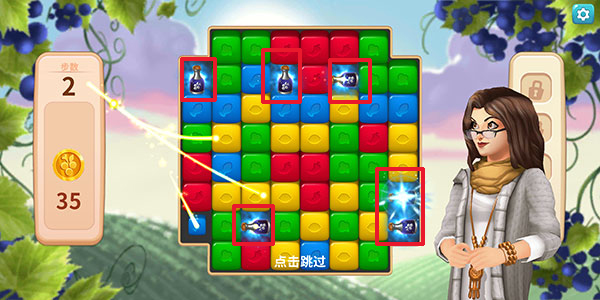 游戏采用经典点击式消除机制,只需选中两个或以上相邻的同色方块即可完成消除,对应的任务目标数量也会同步减少。