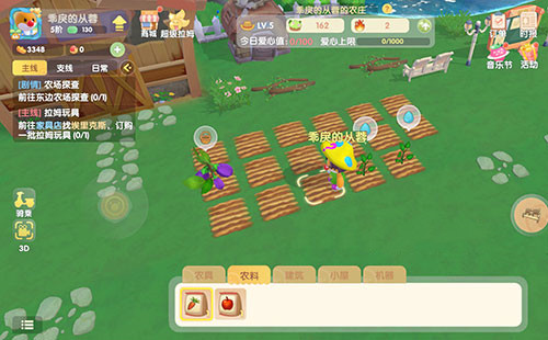 种子落地后会逐渐发芽,此时使用工具中的“水壶”进行浇水。作物成长过程中若希望加速成熟,可施加肥料以缩短等待时间。
