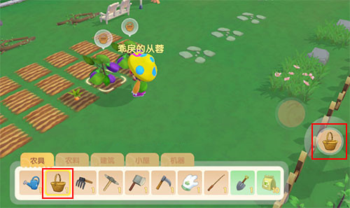 待作物完全成熟后,拿起农具栏里的“篮子”即可轻松收获新鲜农作物。