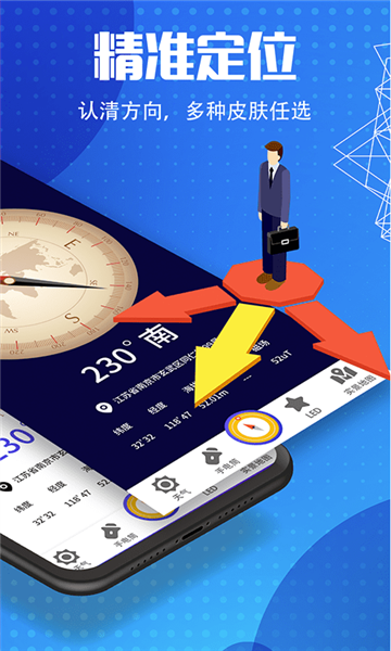 支持高精度电子罗盘功能,实时显示当前朝向,不受网络信号限制。