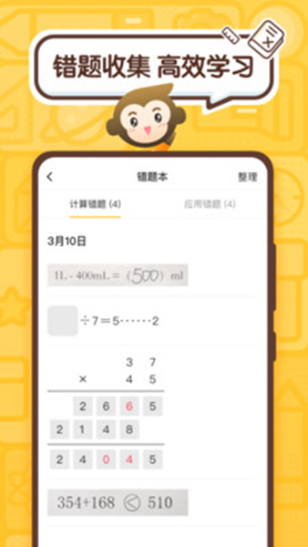 错题收集,针对练习:自动归集错题,便于孩子集中攻克薄弱环节,强化对难点和易错点的理解。