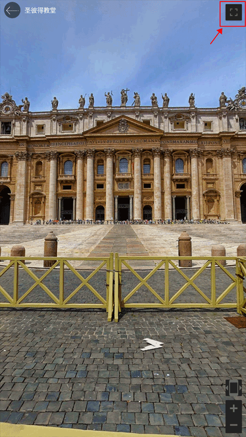 进入后即呈现该景点的VR视图,点击右上角图标可切换至全屏模式,获得更沉浸的观看体验。