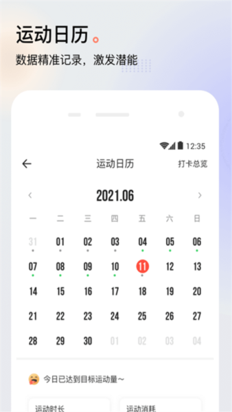 在“健康日历”中查看每日记录,掌握长期趋势变化。