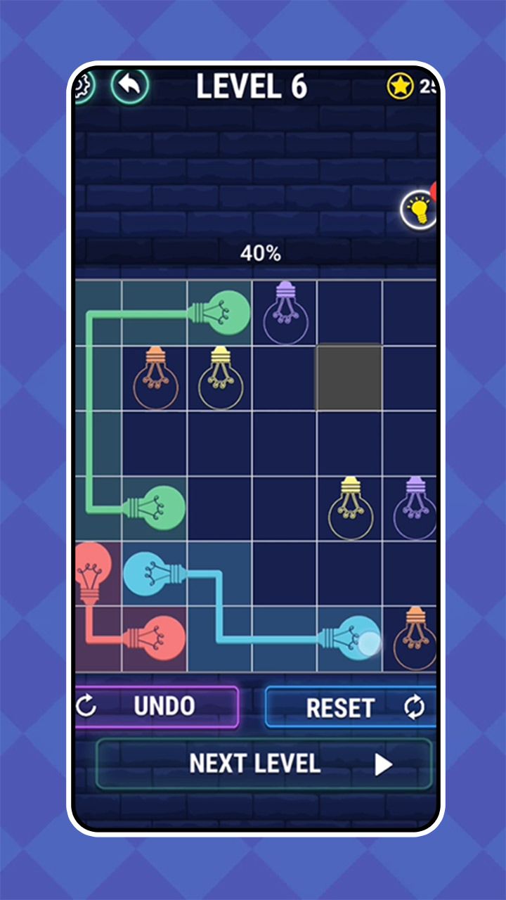 在物理连线消除中,玩家需要通过绘制发光线将同色灯泡两两连接,直至填满整个棋盘格子。游戏以简洁清爽的画面搭配炫目的光效呈现,强调路径规划与空间逻辑,要求玩家巧妙安排每一条光线走向,避开障碍与干扰,在静谧而富有科技感的氛围中享受纯粹的解谜乐趣。多样化的关卡设计配合渐进式难度,让每一次成功连接都伴随成就感与奖励回馈。
