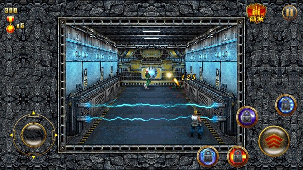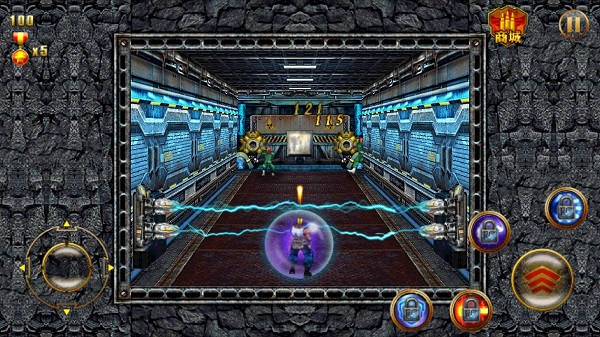 进入堡垒内部,每小关均设有电网封锁,需先摧毁镜状机关方可通行。首小关中央机关暴露,击破前可等待红色小兵出现以获取“R”。第二小关右侧增设炮台,建议先清理再回身破坏机关。后续小关炮台数量递增,分别位于机关两侧或上方,需逐一清除后再攻击核心。第五小关三面环绕炮台且敌兵密集,需谨慎推进。