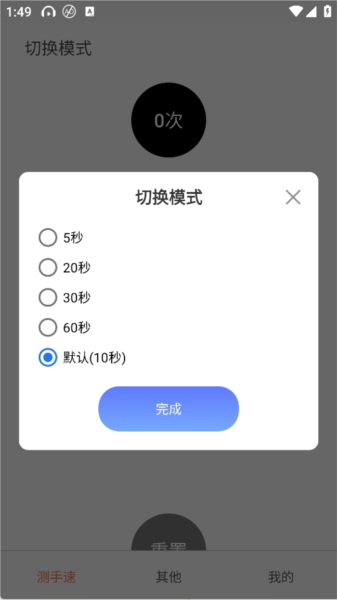 测试结束后自动记录最高点击频率与平均反应速度。