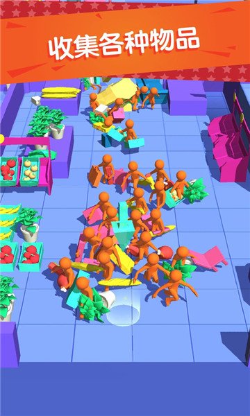 玩家操控灵活的火柴人角色,在商场中自由奔跑、选购、拾取,动作流畅自然。