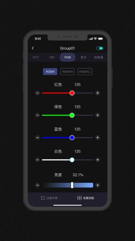在软件中选择对应型号的灯具,即可进入独立控制界面。