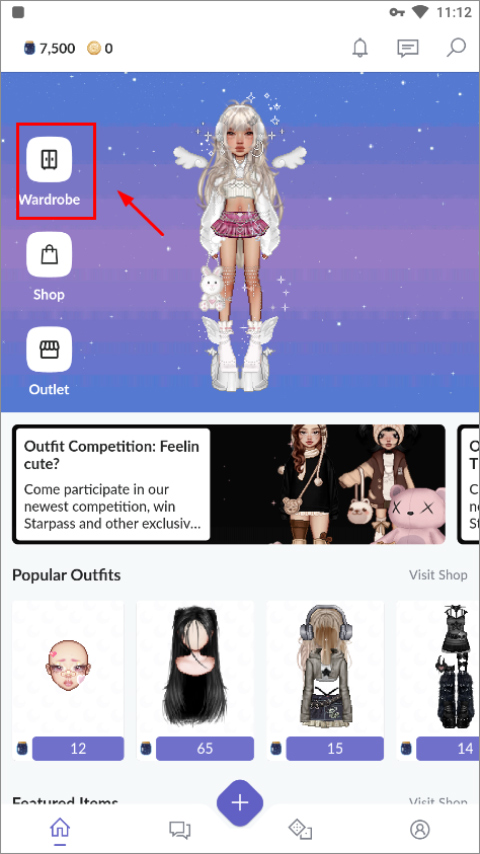 启动最新版Everskies手游,进入游戏后点选“Wardrobe”开始操作。