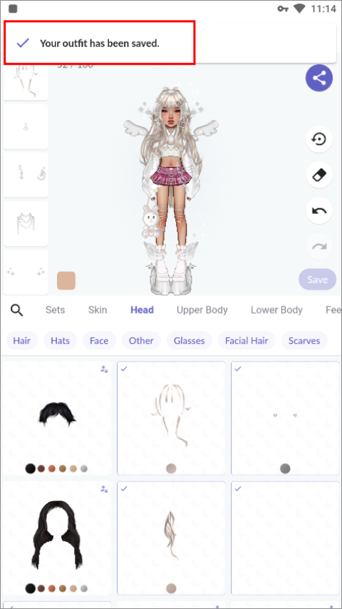 稍等片刻,当页面顶部提示“Youroutfithasbeensaved”时,即表示套装已成功存档。