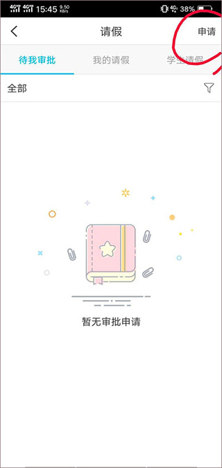 进入请假页面后,点击右上角的申请选项。
