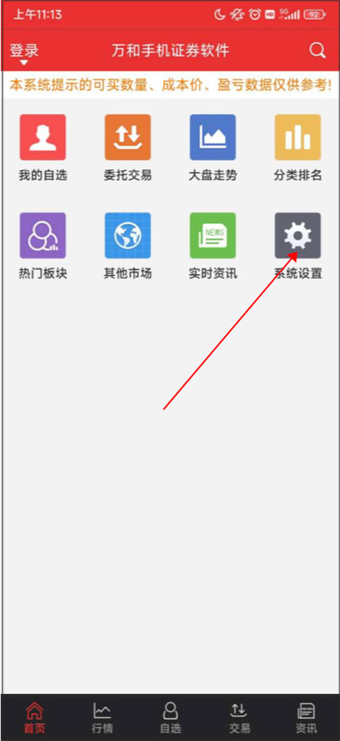 下载安装软件后,进入首页,点击系统设置。