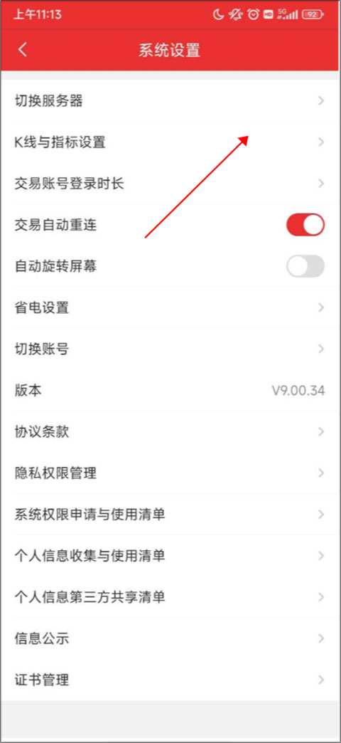 在系统设置中找到“K线与指标设置”并点击进入。