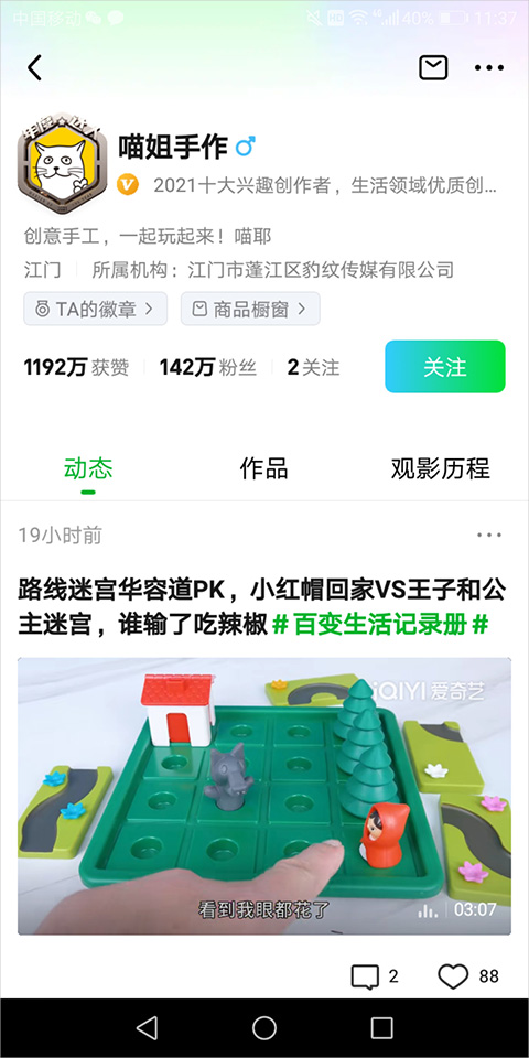 在随刻视频页面中,用户可关注各类优质创作者账号,例如“喵姐手作号”分享创意手工制作技巧,适合喜欢DIY的用户订阅。