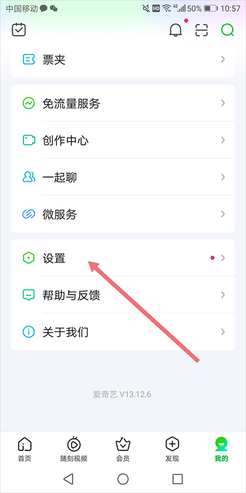 打开爱奇艺APP,进入底部【我的】页面,点击【设置】。