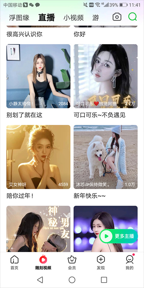 喜欢直播的用户可点击顶部导航栏的【直播】入口,进入直播间观看高颜值、有才艺的主播带来的精彩内容。