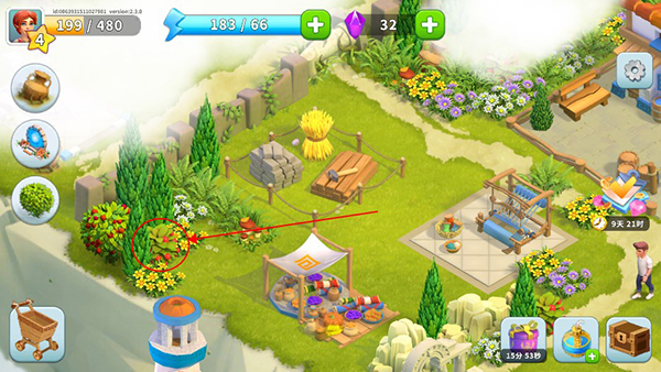 在小岛上寻找结有果子的植物,点击即可触发互动。