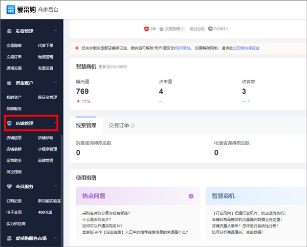进入“店铺资料”可查阅并更新部分基础信息,但密码修改仍需通过登录页的找回流程完成。