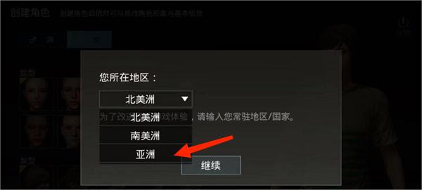 登录后会进入地区选择界面,选择“亚洲”并点击继续。