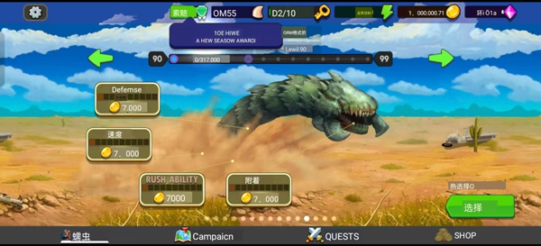 完成关卡任务可获得金币奖励,累积足够数量后可在商店直接购买新蠕虫角色。