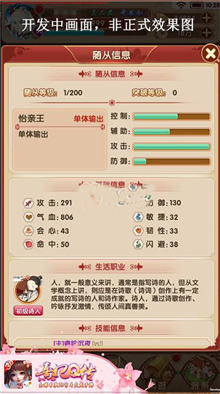其技能“长生犹许”可对敌方前排造成173%+102的攻击伤害,“悲秋入画”则提供团队增益,输出与辅助兼备,在前期阵容中颇具价值。