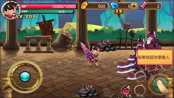 点击攻击按钮进行攻击敌人,配合方向键可以进行连击。