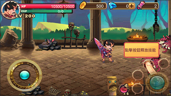 点击如图按钮进行释放技能,技能能让你在战斗中有着高额伤害让你更加容易过关。