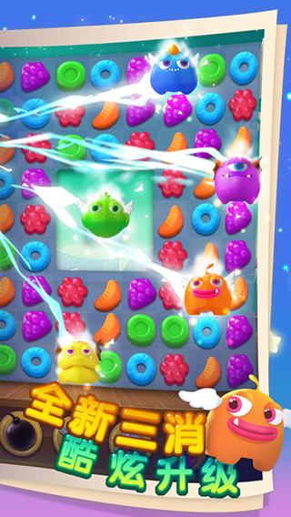为了守护这个缤纷世界免受蠢萌魔法小怪兽的侵扰,玩家需通过闯关形式不断消除五彩斑斓的糖果。