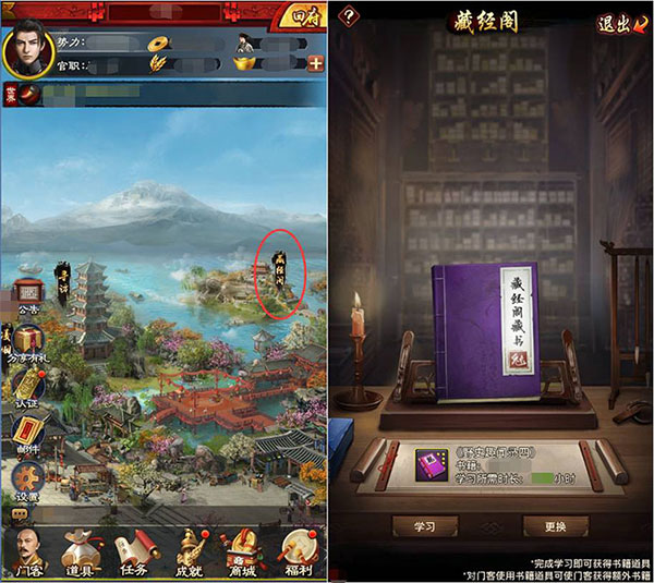 爱学习才能进步!大人可前往藏经阁消耗时间研读新书,所获书籍道具可直接赋予心仪门客,使其战力显著提升。