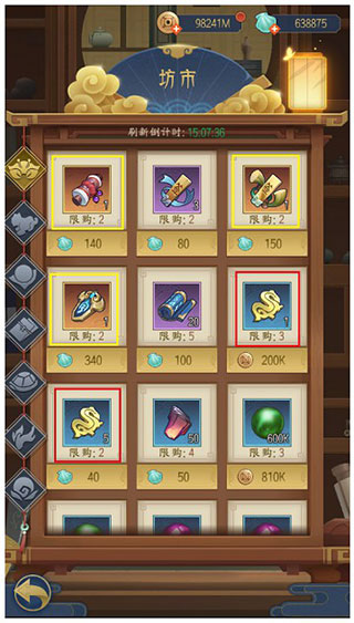访市材料需合理规划。每周“招贤纳士”“问天卜卦”“圣贤召唤”三者轮换,选定其一后当日仅能购买对应道具,待目标活动回归再集中投入。