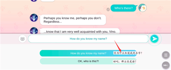 对方回应:“你也许认识我,也或许不认识。无论如何,你只用知道我和你很熟,MC。”此时可追问:“你为什么知道我的名字?”