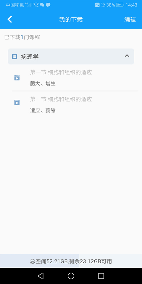 用户在人卫app中下载的视频并不显示在我-下载管理中,该路径仅包含电子书及图书增值内容,不包含视频文件