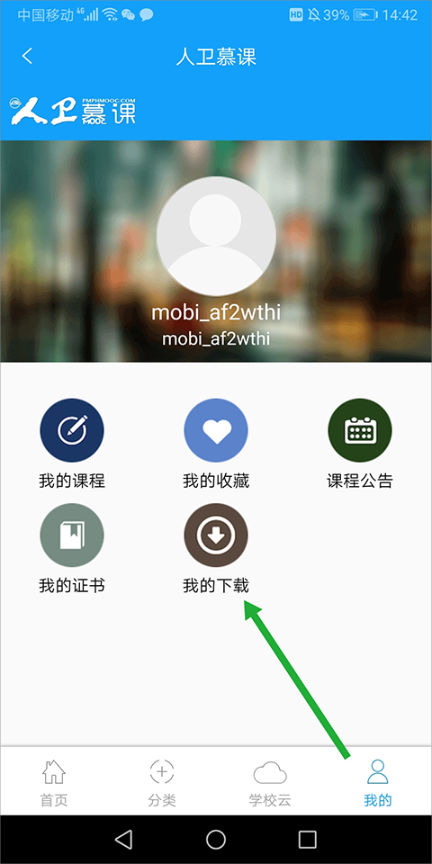 通过人卫慕课功能下载的视频,需进入人卫慕课页面,点击底部我的,再进入新页面中的我的下载选项