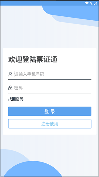 1、下载并安装票证通手机版,首次使用需注册或登录个人账号。