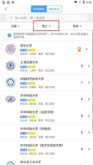 用户也能依据自身选考科目类型筛选高校,并查看每所院校的详细资料;